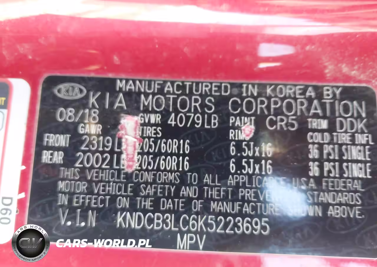 IAAI Nr: I-43683024 VIN: KNDCB3LC6K5223695 Port: Indianapolis, IN