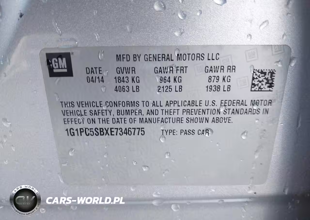 IAAI Nr: I-43705914 VIN: 1G1PC5SBXE7346775 Port: Elizabeth, NJ