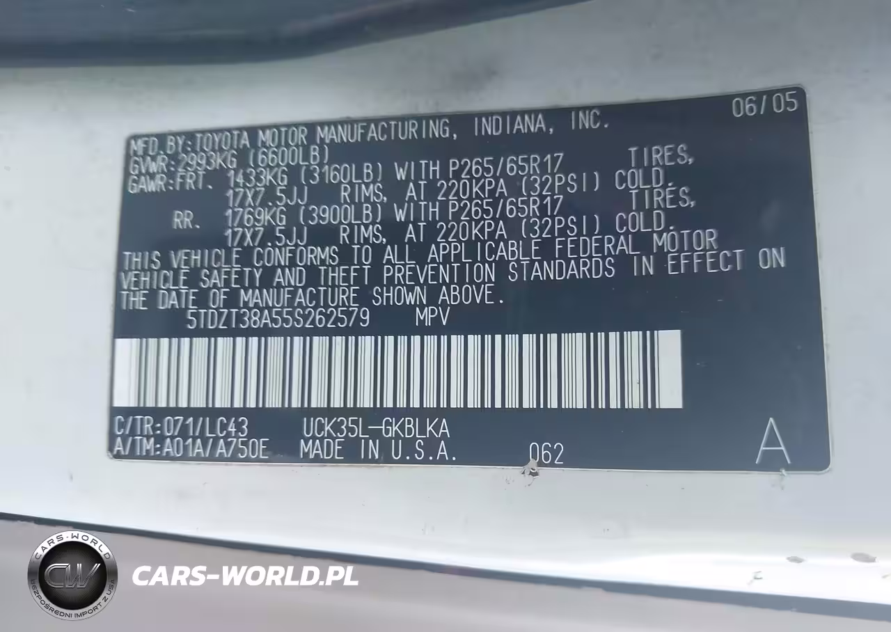 IAAI Nr: I-43707747 VIN: 5TDZT38A55S262579 Port: Savannah, GA