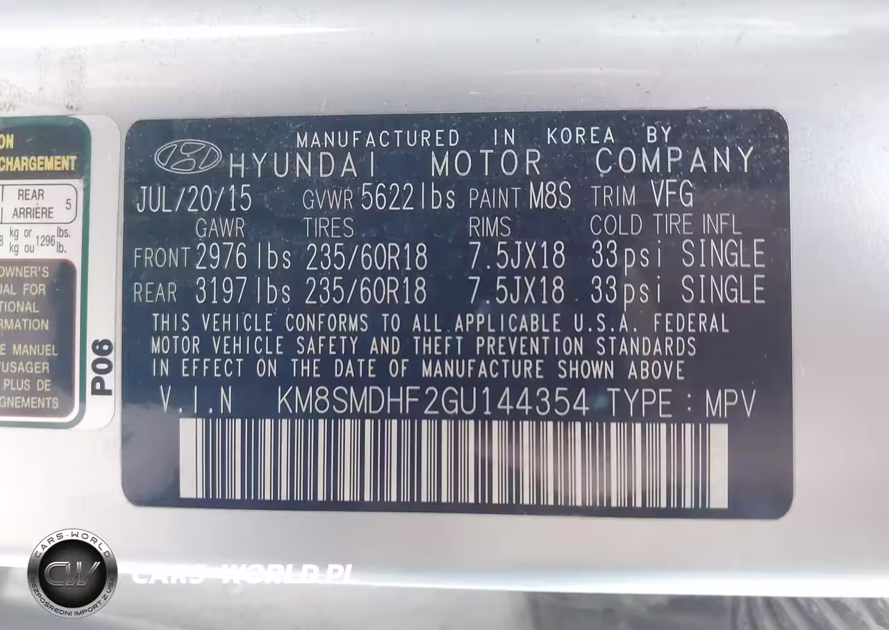 IAAI Nr: I-43723955 VIN: KM8SMDHF2GU144354 Port: Indianapolis, IN