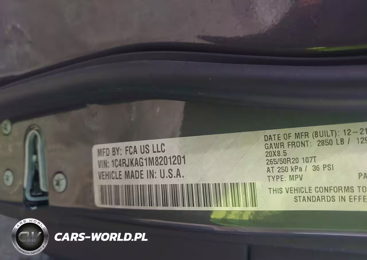IAAI Nr: I-43734311 VIN: 1C4RJKAG1M8201201 Port: Savannah, GA
