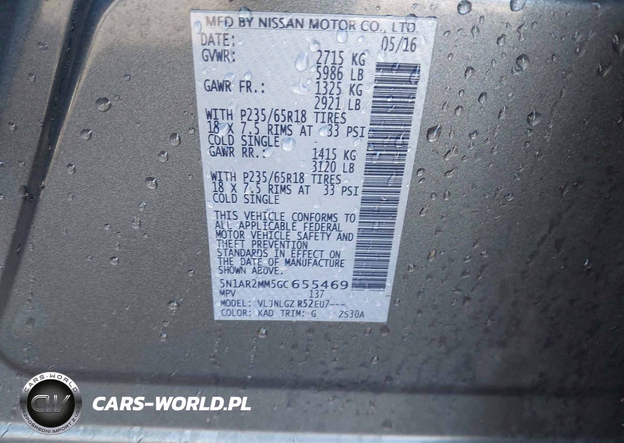 IAAI Nr: I-43741123 VIN: 5N1AR2MM5GC655469 Port: Savannah, GA