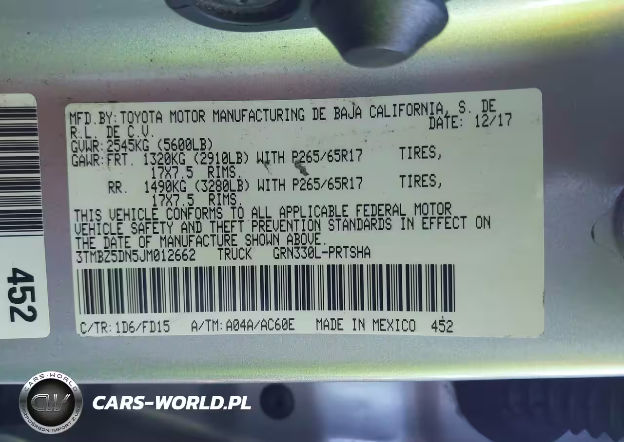 IAAI Nr: I-43746320 VIN: 3TMBZ5DN5JM012662 Port: Los Angeles, CA