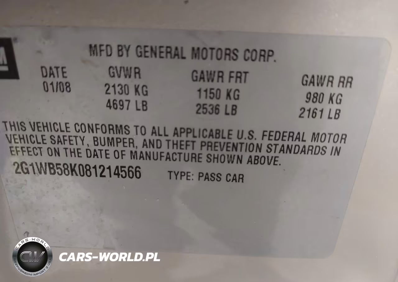 IAAI Nr: I-43752622 VIN: 2G1WB58K081214566 Port: Houston, TX