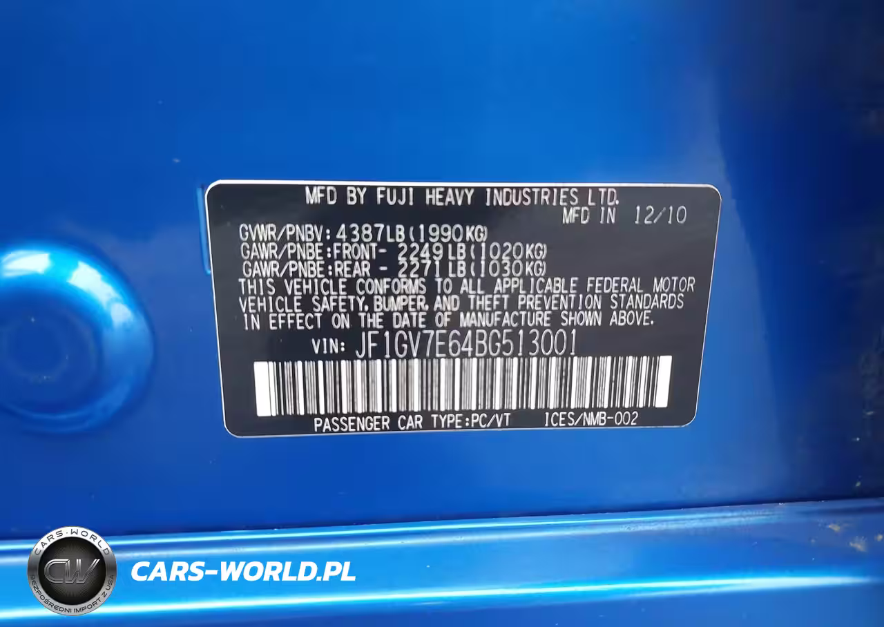 IAAI Nr: I-43762968 VIN: JF1GV7E64BG513001 Port: Los Angeles, CA