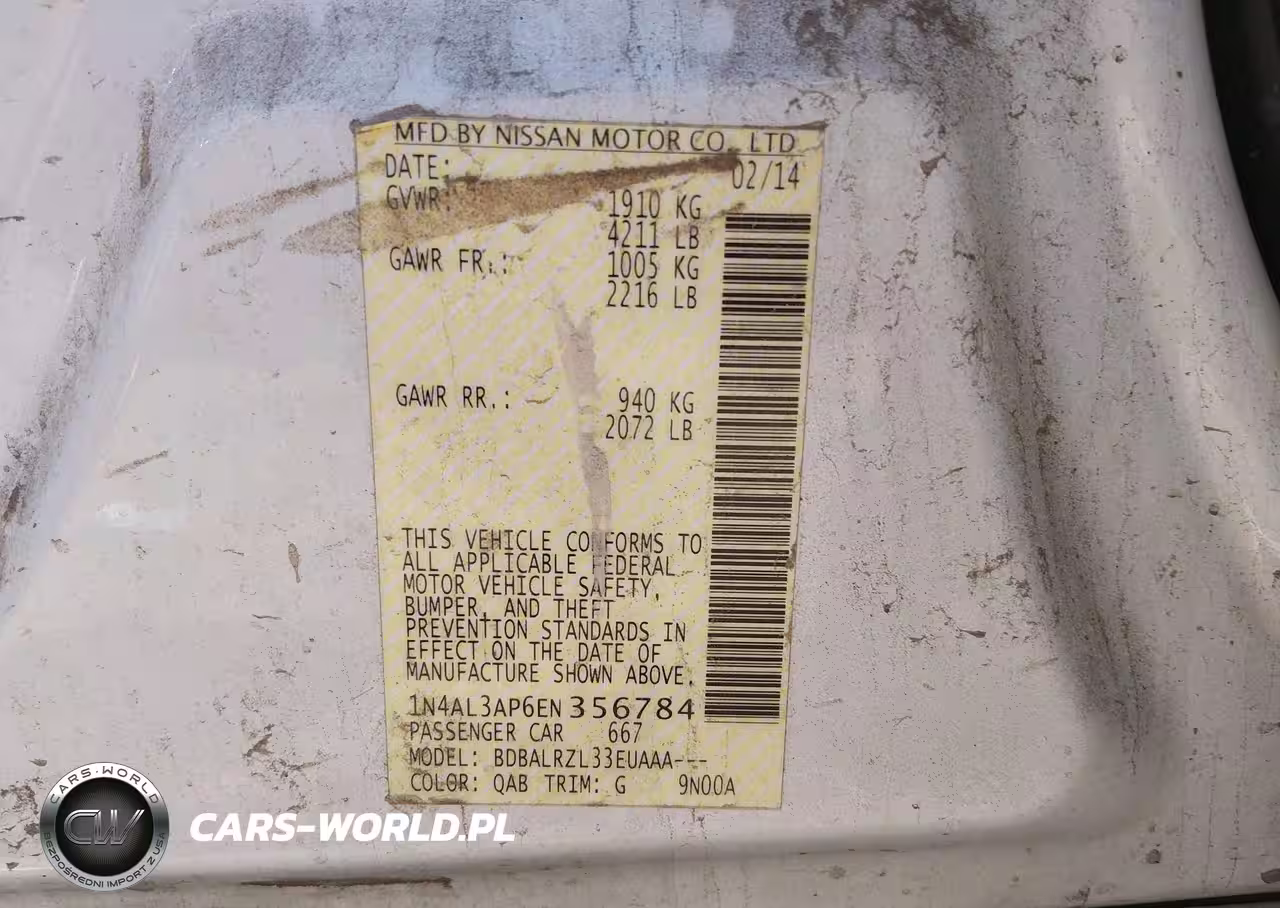 IAAI Nr: I-43791002 VIN: 1N4AL3AP6EN356784 Port: Los Angeles, CA