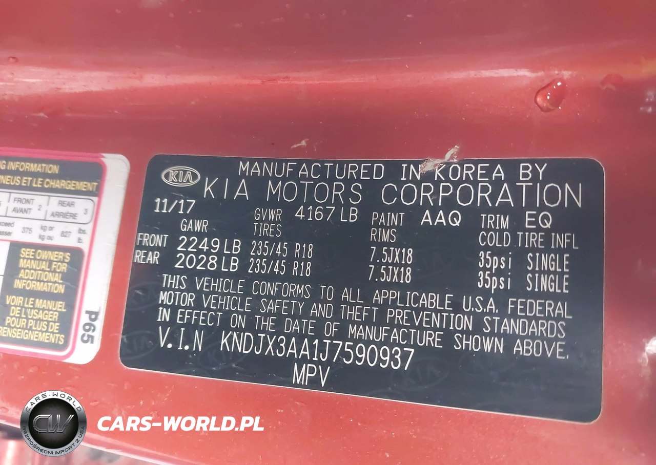 IAAI Nr: I-43800537 VIN: KNDJX3AA1J7590937 Port: Los Angeles, CA