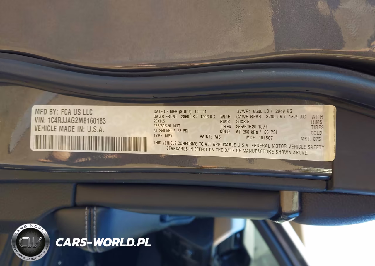IAAI Nr: I-43807660 VIN: 1C4RJJAG2M8160183 Port: Los Angeles, CA
