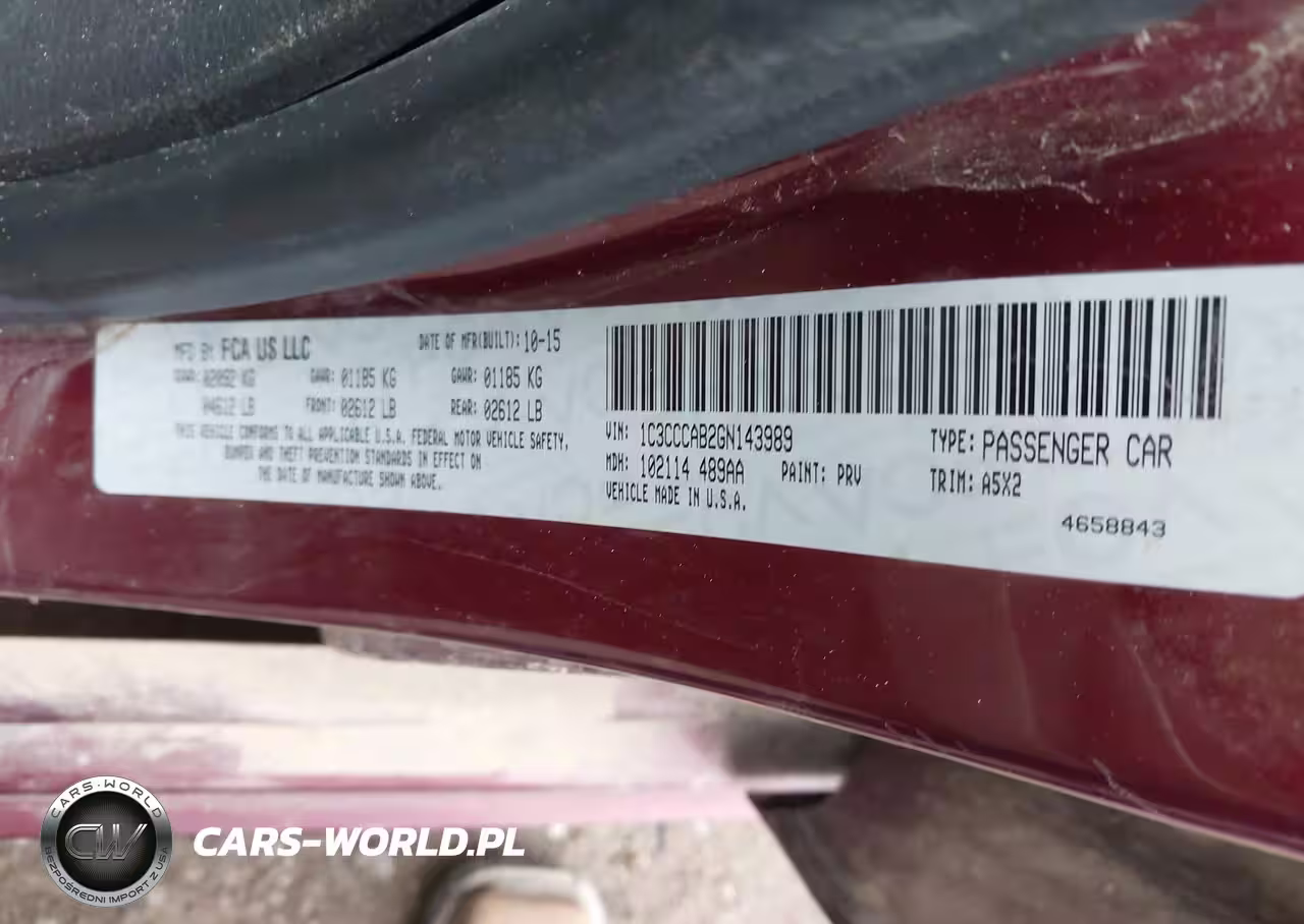 IAAI Nr: I-43811426 VIN: 1C3CCCAB2GN143989 Port: Houston, TX