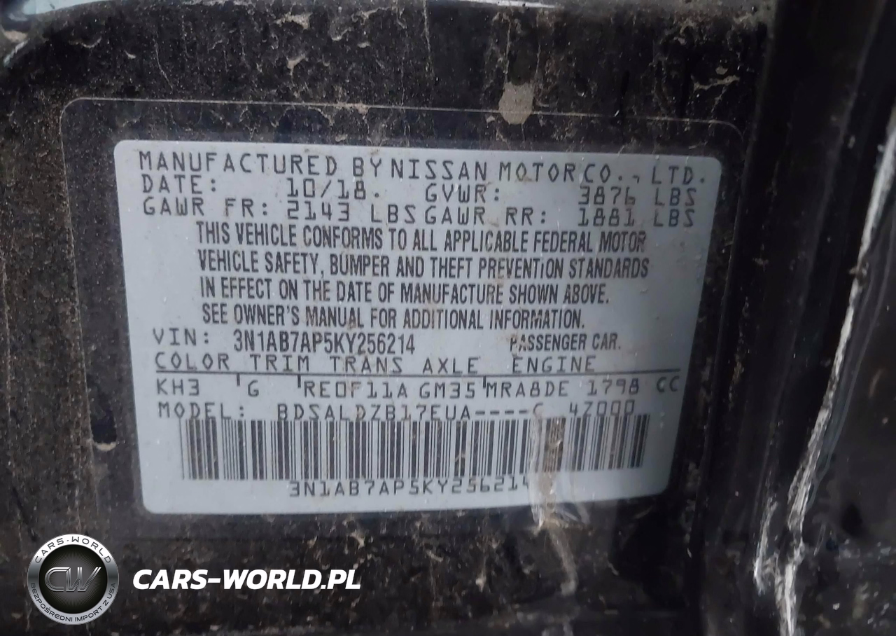 IAAI Nr: I-43814736 VIN: 3N1AB7AP5KY256214 Port: Elizabeth, NJ