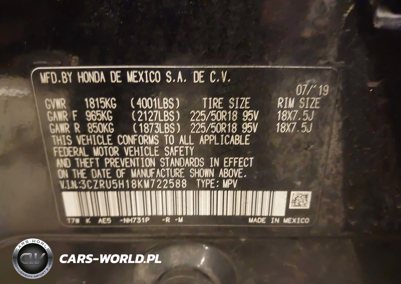 IAAI Nr: I-43829857 VIN: 3CZRU5H18KM722588 Port: Indianapolis, IN