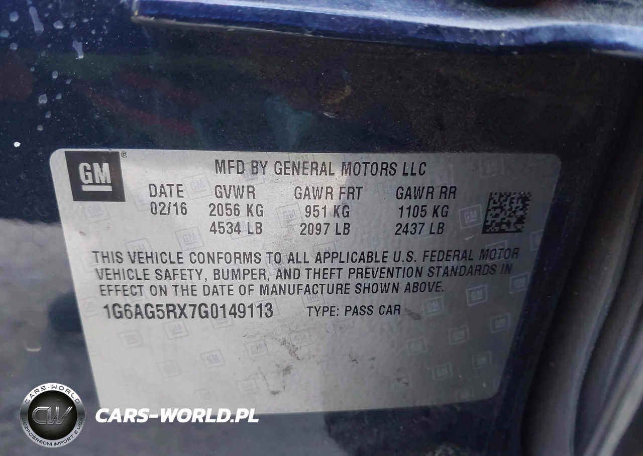 IAAI Nr: I-43841611 VIN: 1G6AG5RX7G0149113 Port: Houston, TX