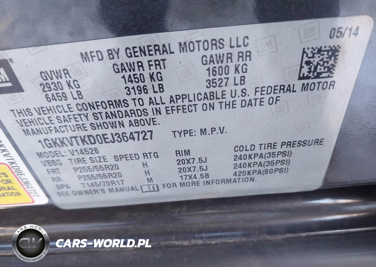 IAAI Nr: I-43841811 VIN: 1GKKVTKD0EJ364727 Port: Indianapolis, IN