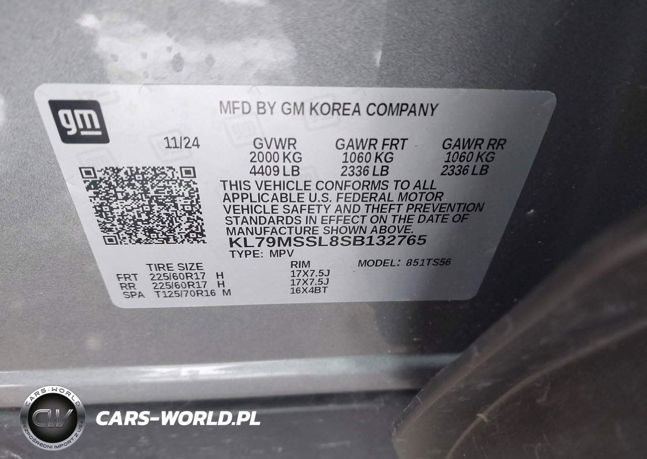 IAAI Nr: I-43848822 VIN: KL79MSSL8SB132765 Port: Indianapolis, IN