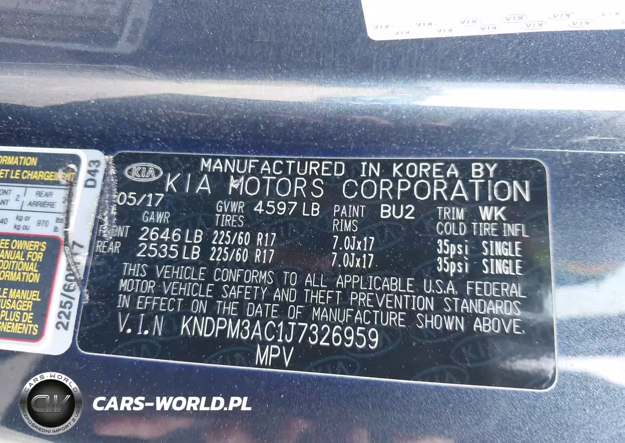 IAAI Nr: I-43854052 VIN: KNDPM3AC1J7326959 Port: Savannah, GA