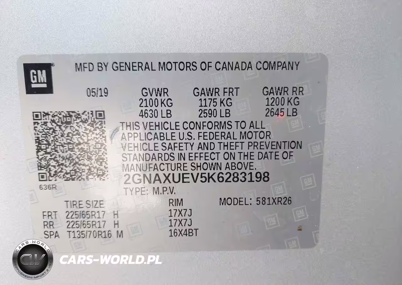 IAAI Nr: I-43855872 VIN: 2GNAXUEV5K6283198 Port: Los Angeles, CA