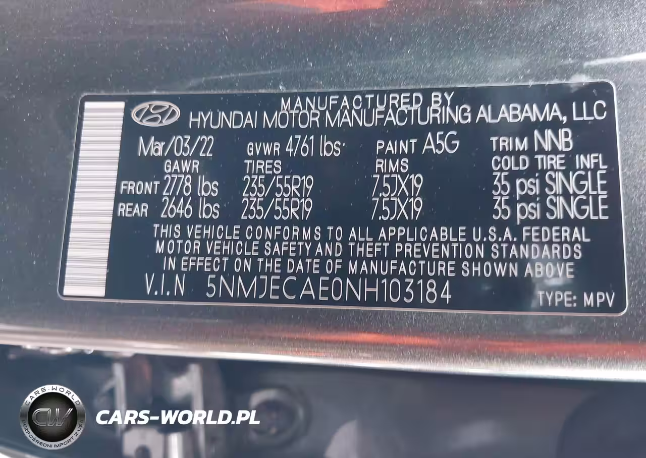 IAAI Nr: I-43858524 VIN: 5NMJECAE0NH103184 Port: Elizabeth, NJ