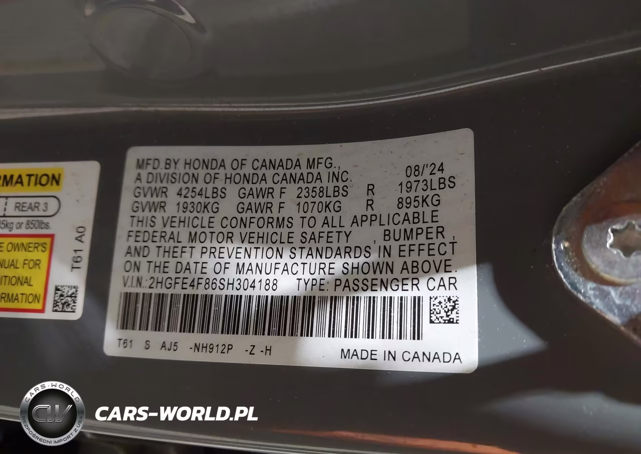 IAAI Nr: I-43863404 VIN: 2HGFE4F86SH304188 Port: Indianapolis, IN