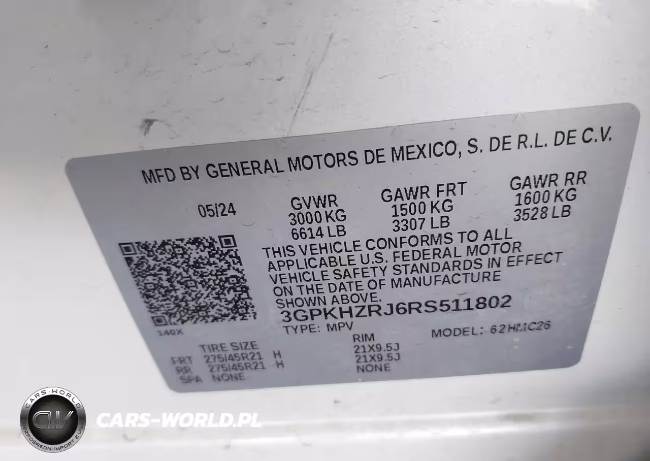 IAAI Nr: I-43867642 VIN: 3GPKHZRJ6RS511802 Port: Indianapolis, IN