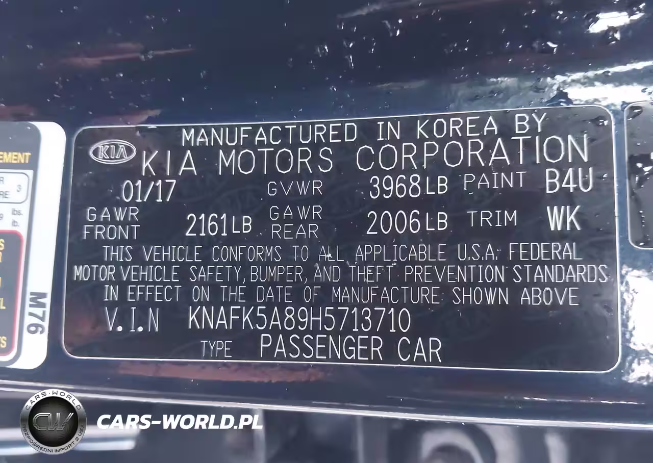 IAAI Nr: I-43871104 VIN: KNAFK5A89H5713710 Port: Savannah, GA