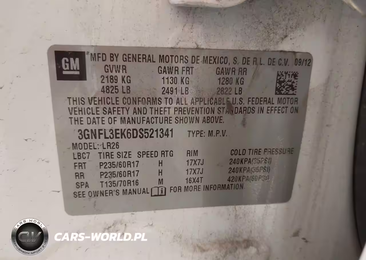 IAAI Nr: I-43892215 VIN: 3GNFL3EK6DS521341 Port: Indianapolis, IN