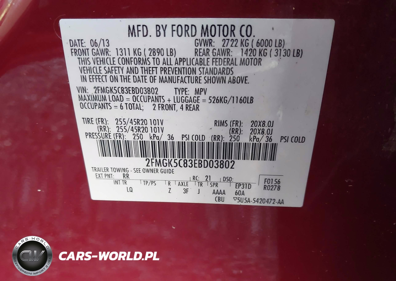 IAAI Nr: I-43896203 VIN: 2FMGK5C83EBD03802 Port: Houston, TX