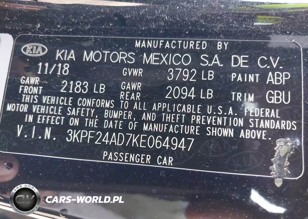 IAAI Nr: I-43904205 VIN: 3KPF24AD7KE064947 Port: Houston, TX