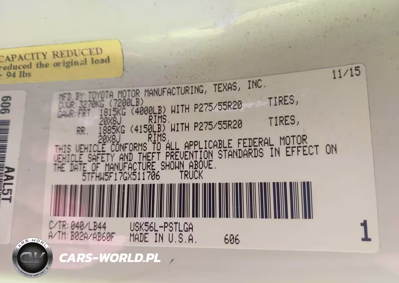 IAAI Nr: I-43906769 VIN: 5TFHW5F17GX511706 Port: Houston, TX