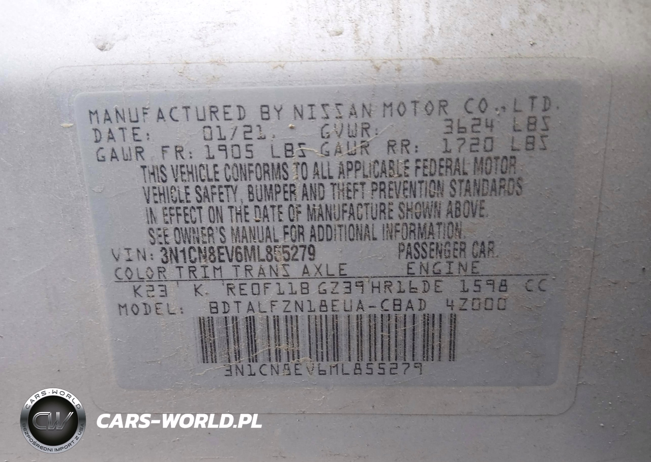 IAAI Nr: I-43907473 VIN: 3N1CN8EV6ML855279 Port: Indianapolis, IN