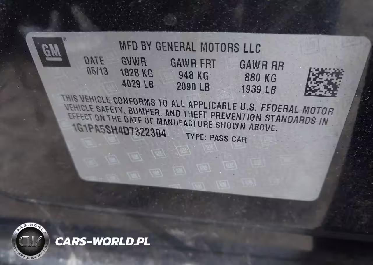 IAAI Nr: I-43915806 VIN: 1G1PA5SH4D7322304 Port: Indianapolis, IN