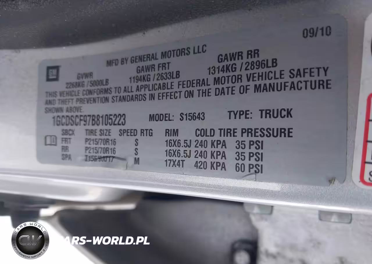 IAAI Nr: I-43918035 VIN: 1GCDSCF97B8105223 Port: Indianapolis, IN
