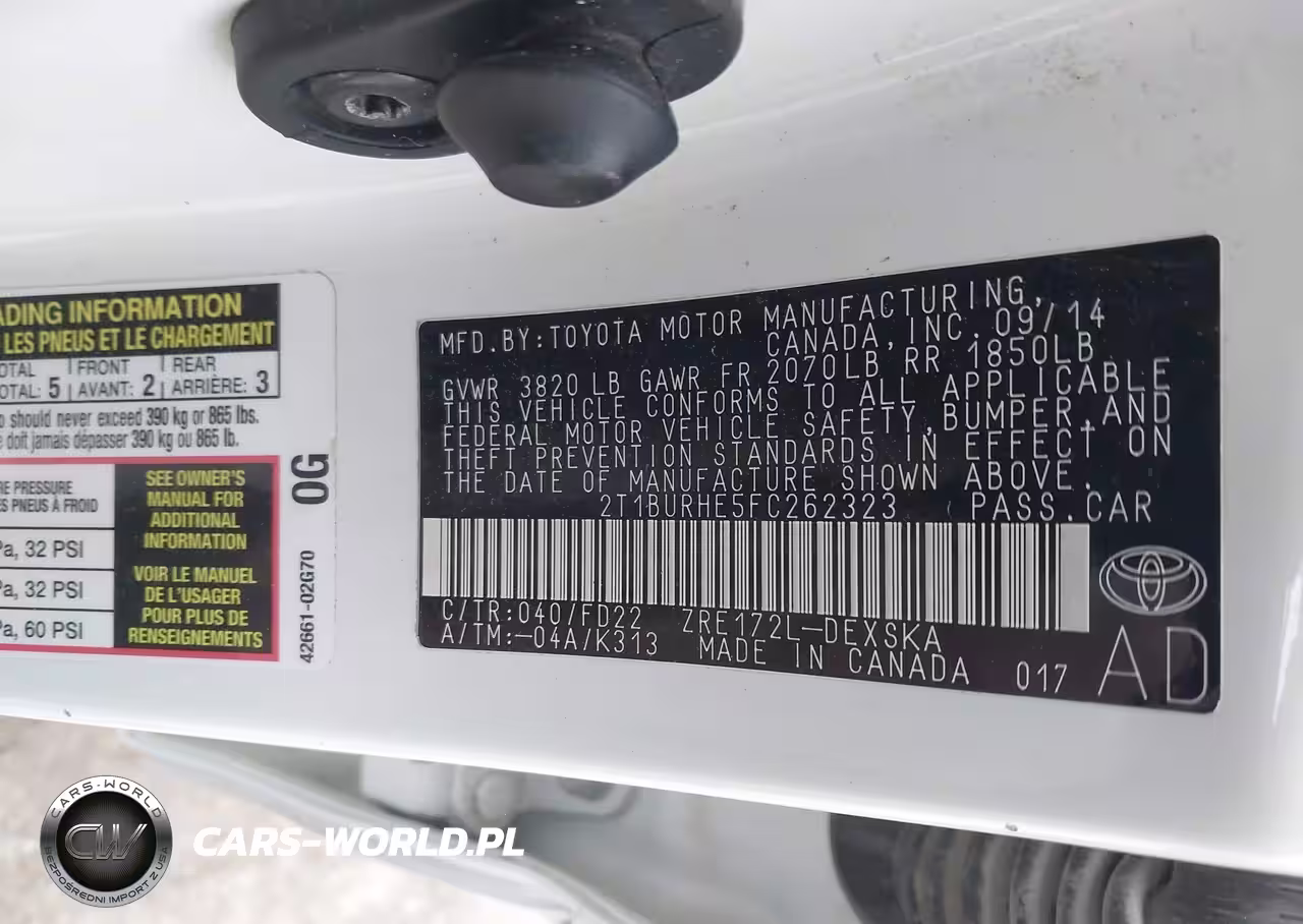 IAAI Nr: I-43924879 VIN: 2T1BURHE5FC262323 Port: Indianapolis, IN