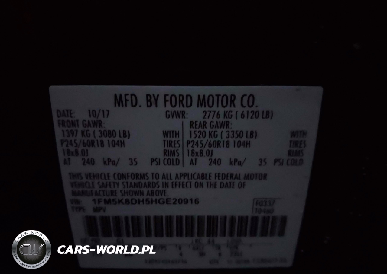 IAAI Nr: I-43927639 VIN: 1FM5K8DH5HGE20916 Port: Indianapolis, IN