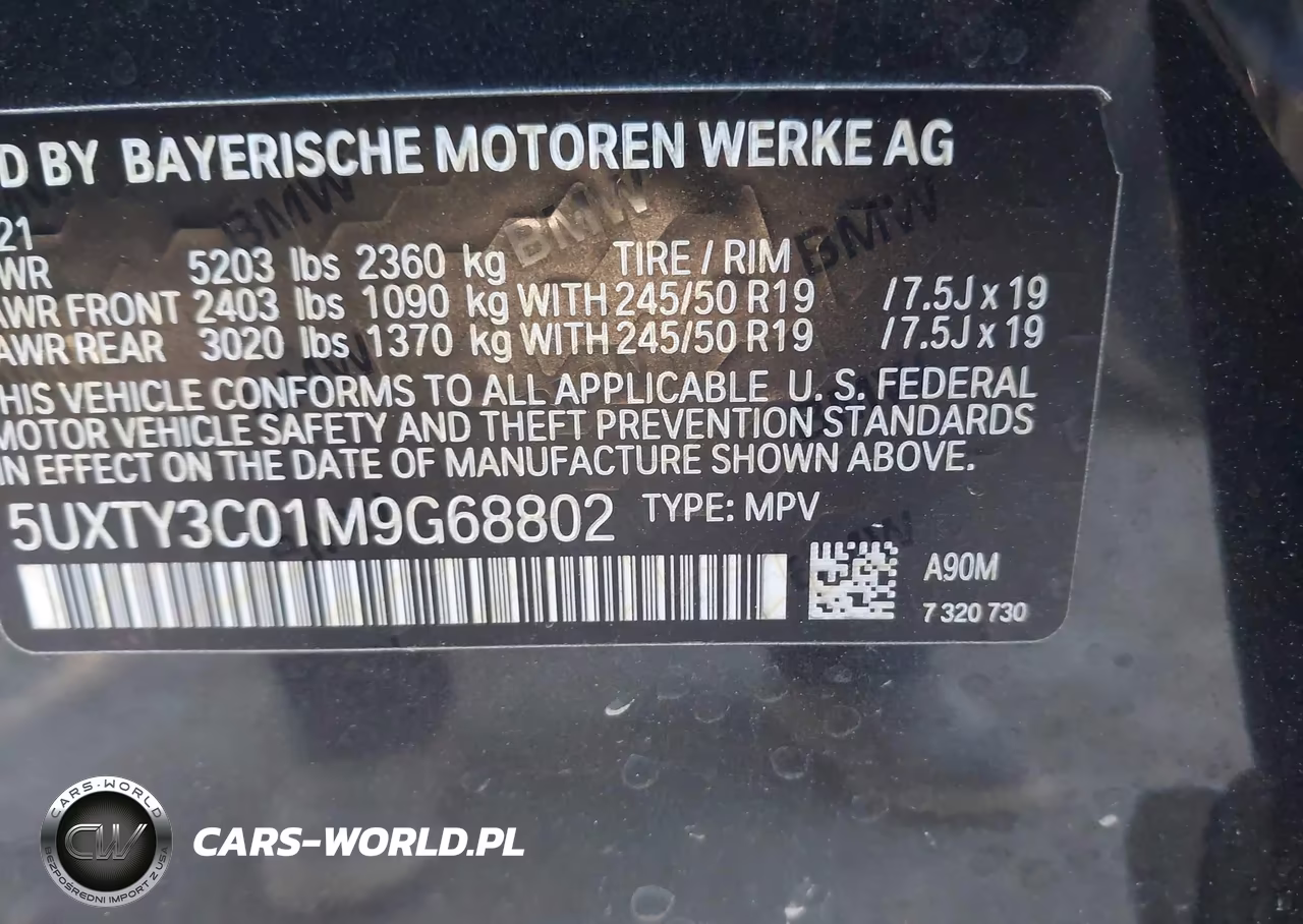 IAAI Nr: I-43928023 VIN: 5UXTY3C01M9G68802 Port: Houston, TX