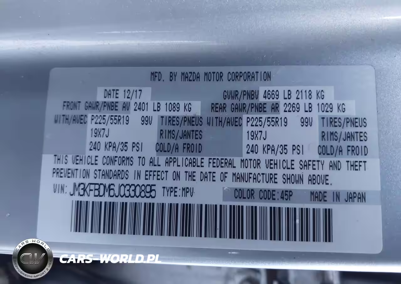 IAAI Nr: I-43931156 VIN: JM3KFBDM6J0330895 Port: Indianapolis, IN