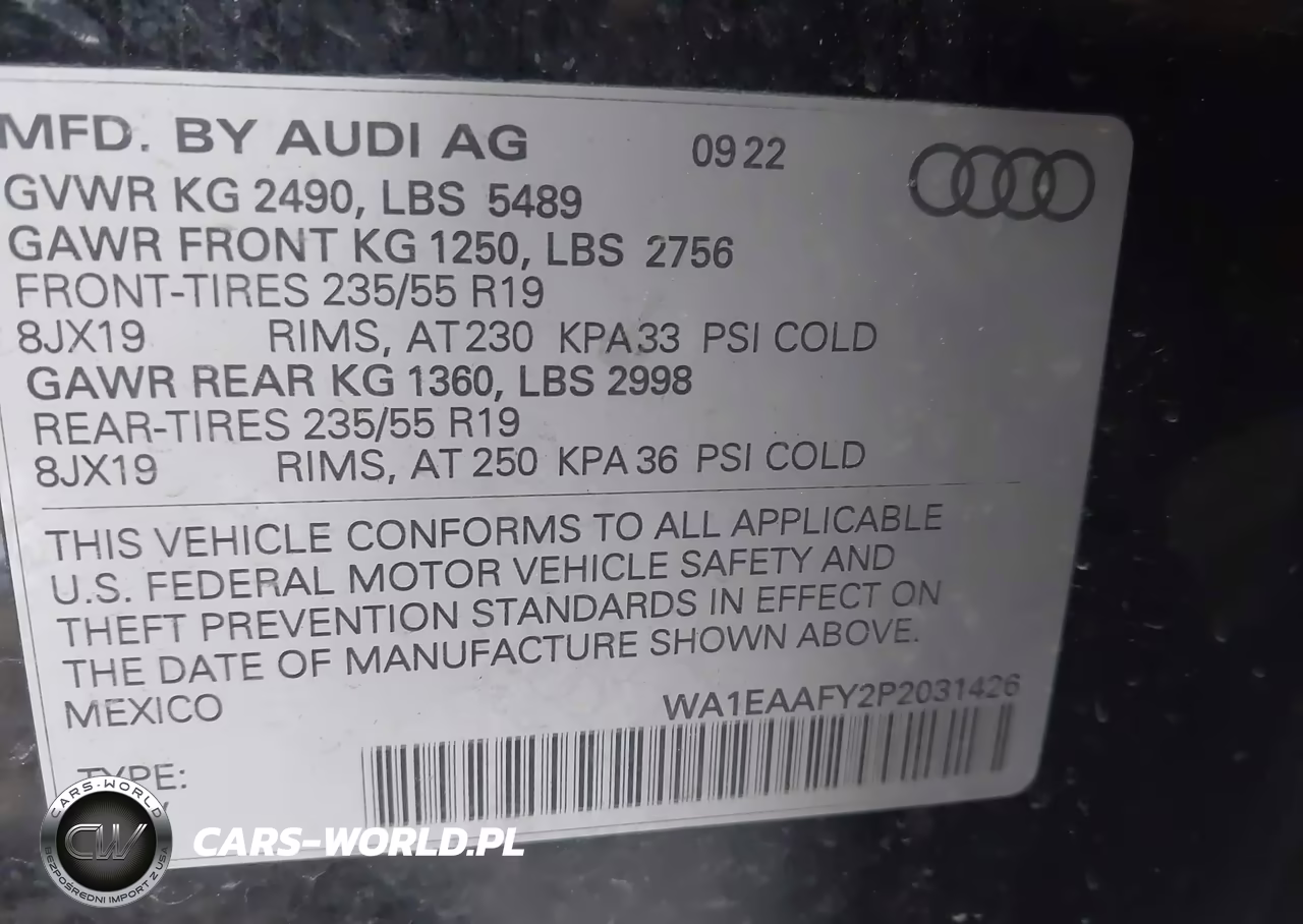 IAAI Nr: I-43940427 VIN: WA1EAAFY2P2031426 Port: Houston, TX