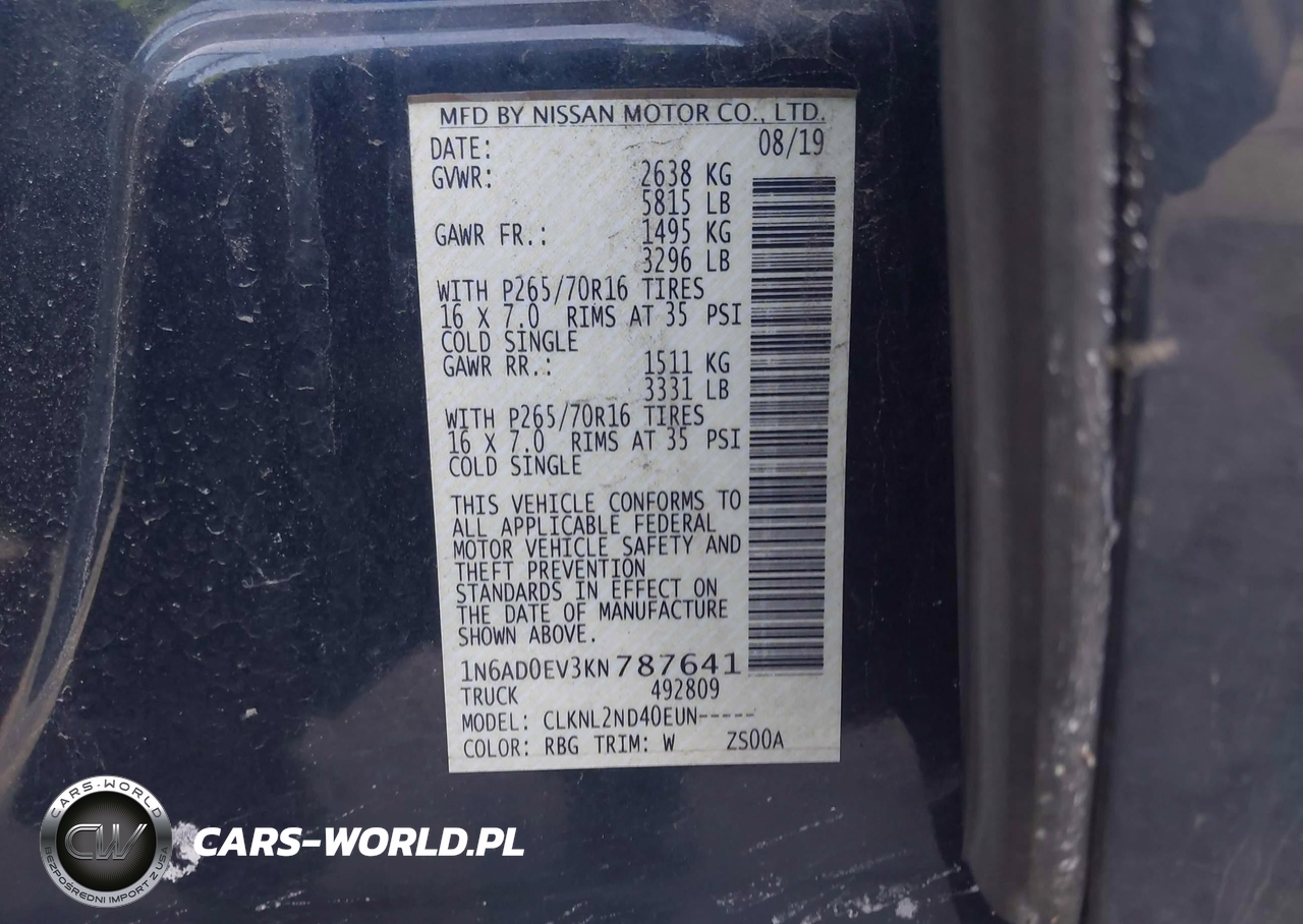 IAAI Nr: I-43944960 VIN: 1N6AD0EV3KN787641 Port: Elizabeth, NJ