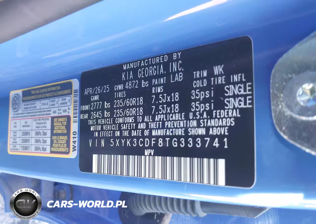 IAAI Nr: I-43947911 VIN: 5XYK3CDF8TG333741 Port: Indianapolis, IN
