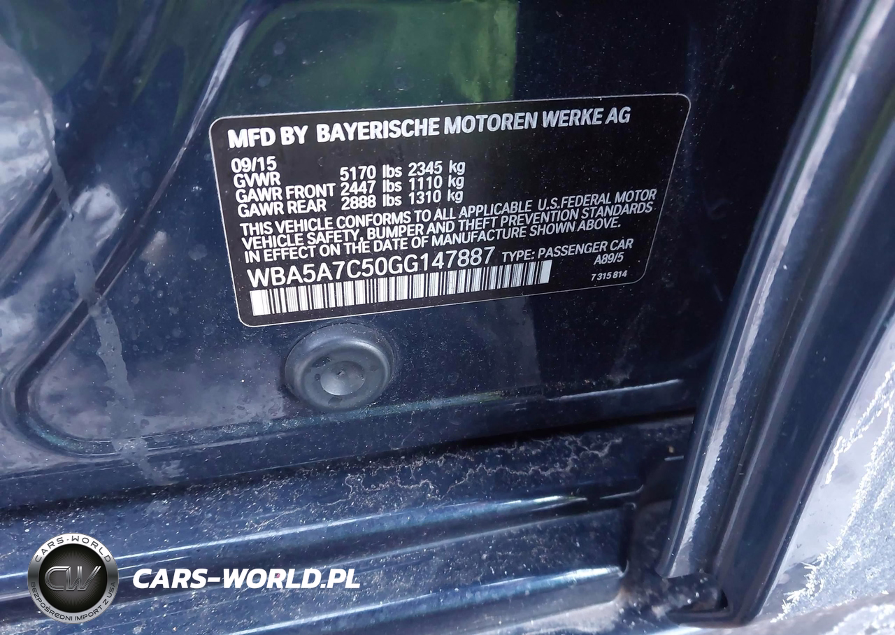 IAAI Nr: I-43951542 VIN: WBA5A7C50GG147887 Port: Elizabeth, NJ