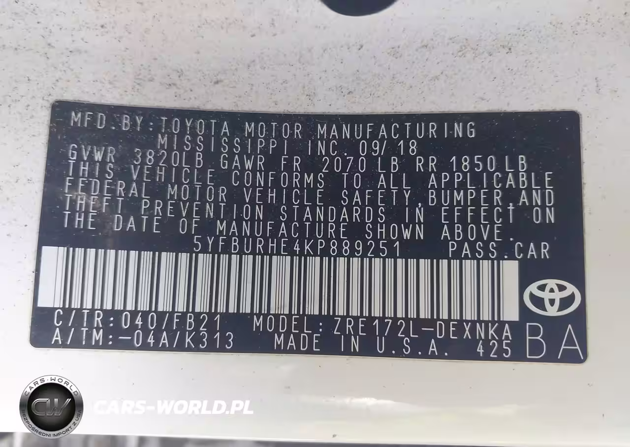 IAAI Nr: I-43952207 VIN: 5YFBURHE4KP889251 Port: Elizabeth, NJ