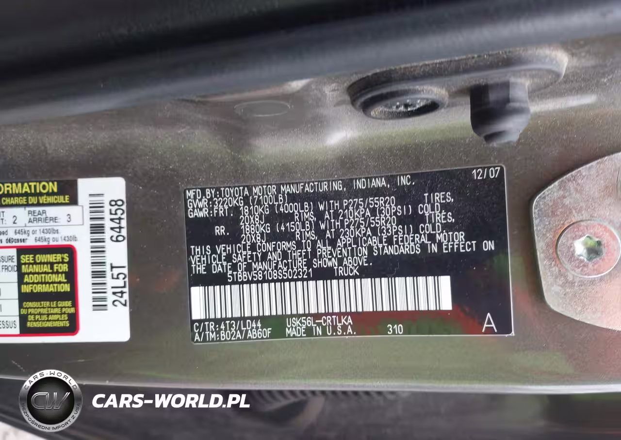 IAAI Nr: I-43954227 VIN: 5TBBV58108S502321 Port: Indianapolis, IN