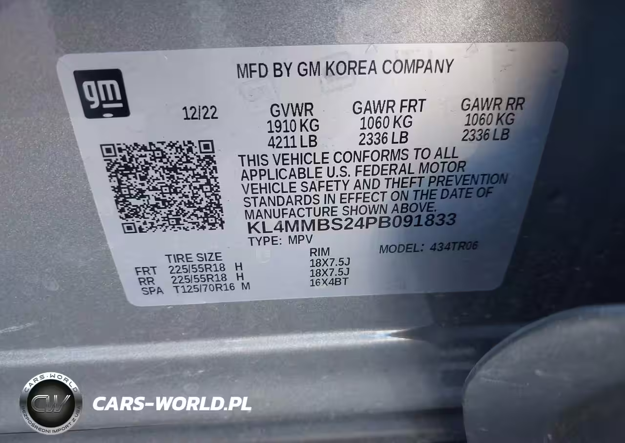 IAAI Nr: I-43957082 VIN: KL4MMBS24PB091833 Port: Houston, TX