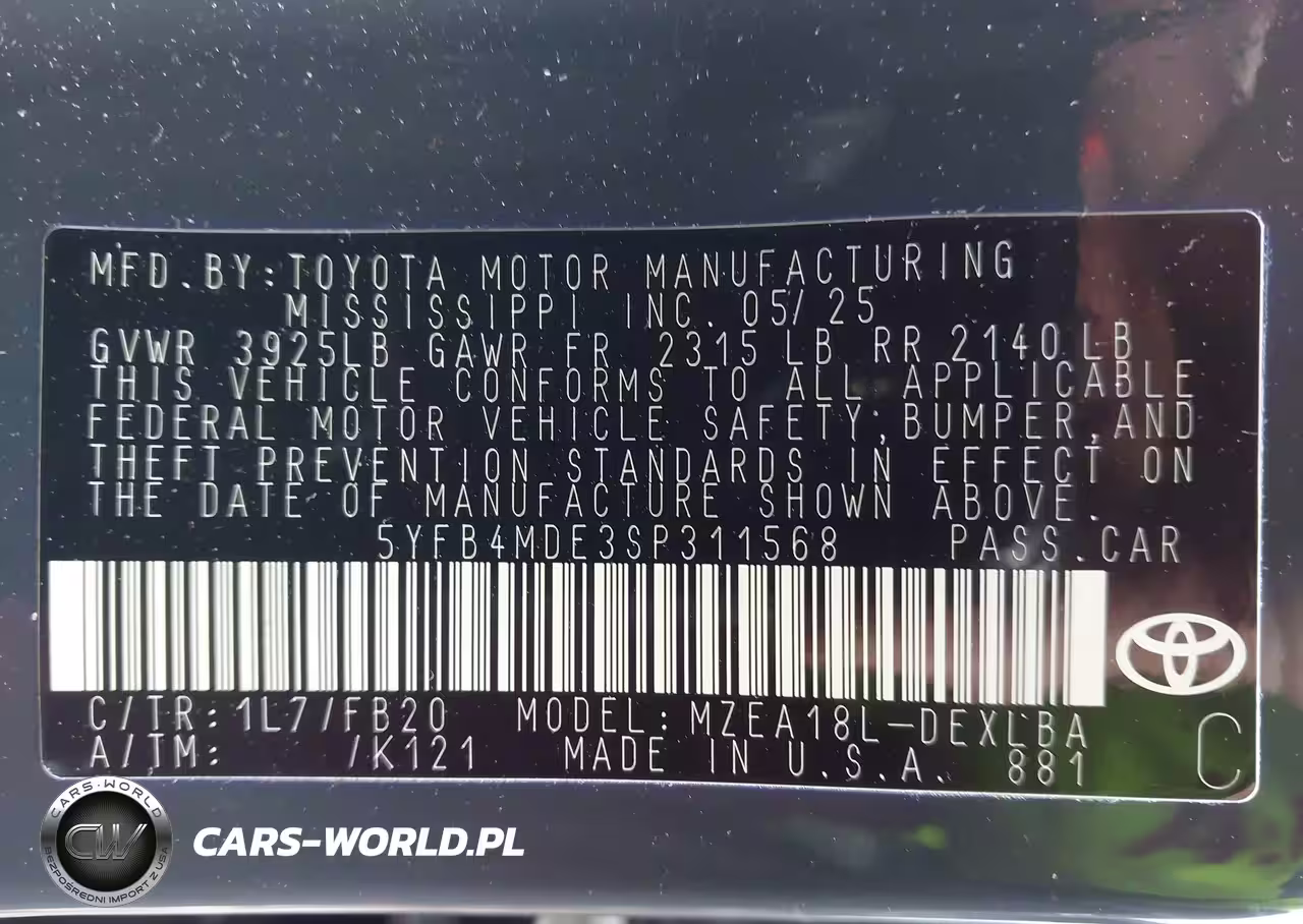 IAAI Nr: I-43971476 VIN: 5YFB4MDE3SP311568 Port: Indianapolis, IN