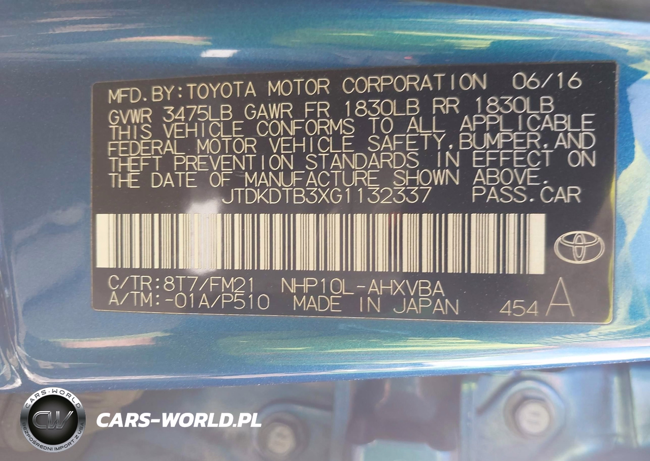 IAAI Nr: I-43977047 VIN: JTDKDTB3XG1132337 Port: Los Angeles, CA