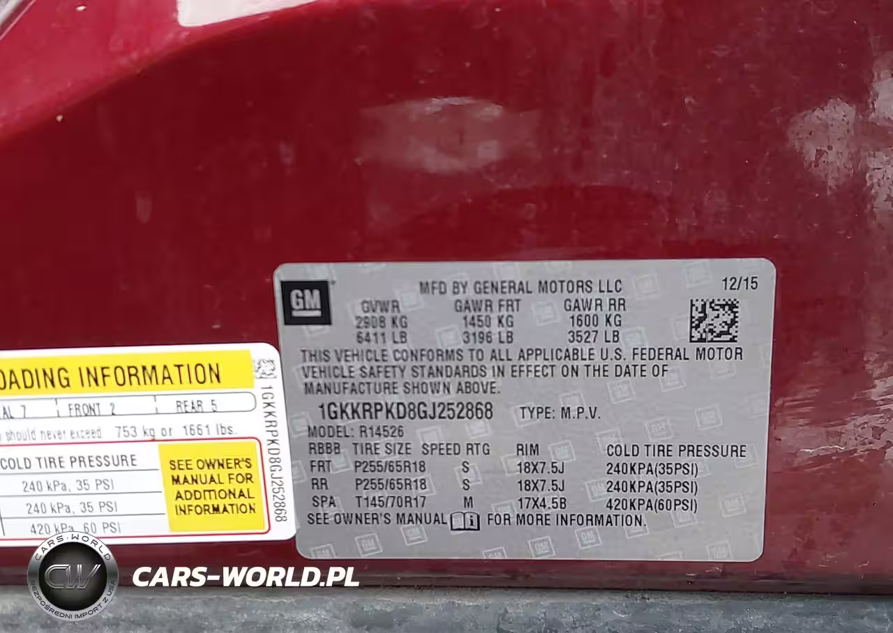 IAAI Nr: I-43983976 VIN: 1GKKRPKD8GJ252868 Port: Indianapolis, IN