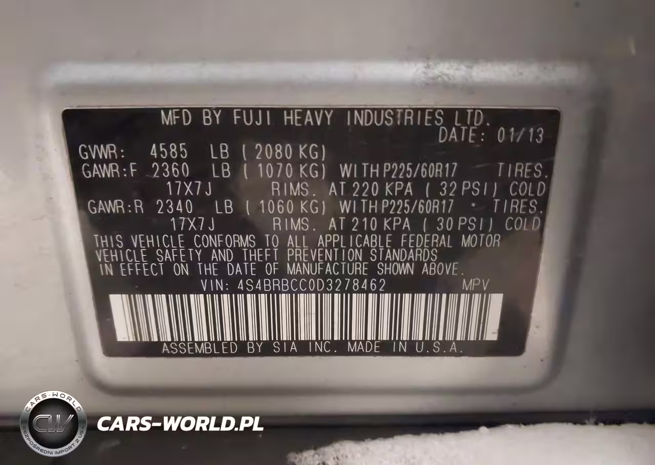 IAAI Nr: I-43990846 VIN: 4S4BRBCC0D3278462 Port: Indianapolis, IN