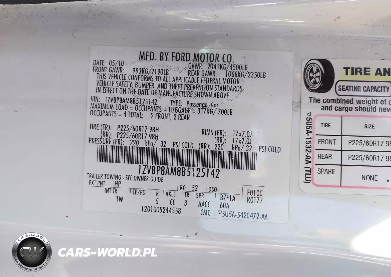 IAAI Nr: I-43990977 VIN: 1ZVBP8AM8B5125142 Port: Houston, TX