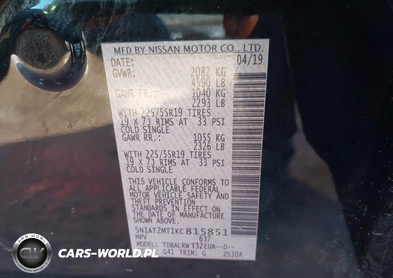 IAAI Nr: I-43991645 VIN: 5N1AT2MT1KC815851 Port: Houston, TX