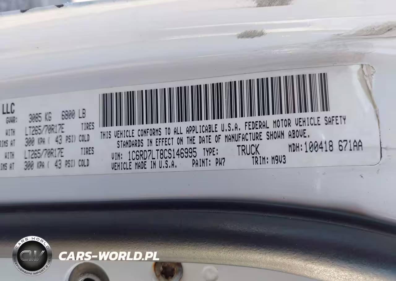 IAAI Nr: I-43993535 VIN: 1C6RD7LT8CS146995 Port: Houston, TX