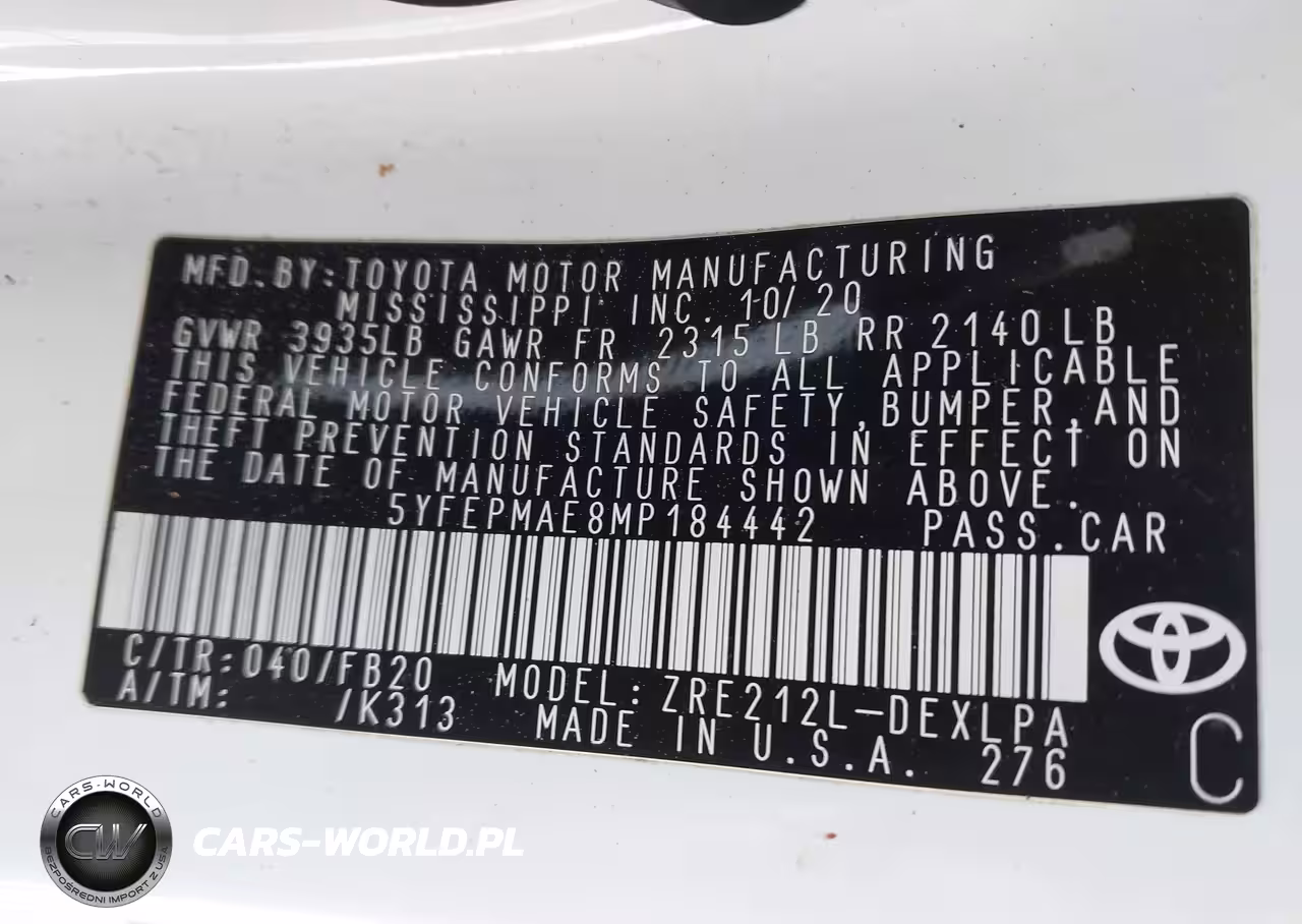 IAAI Nr: I-43995870 VIN: 5YFEPMAE8MP184442 Port: Elizabeth, NJ